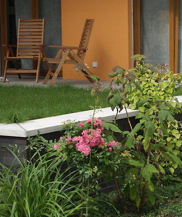 Im Bezirk Friedrichshain, nahe dem Volkspark Friedrichshain, wurde das ca. 4400 m² große Grundstück mit 6 Stadthäusern bebaut. Aufgrund seiner Hanglage wurde das Gelände auf 3 Ebenen mit je 2 Häusern terrassiert. Die notwendigen Stützmauern unterteilen den privaten vom halböffentlichem Aussenraum. Ein rasterartiges Wegenetz verbindet Hauseingänge und 3 Zugänge zum Grundstück. Zwischen den Häusern musste je eine Feuerwehraufstellfläche bereitgestellt werden, welche durch ein Muster aus Schotterrasen, Gehwegplatten und Kies gestaltet wurde. Unter dem Grundstück befindet sich eine Tiefgarage.